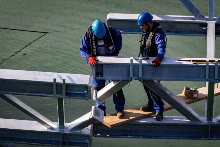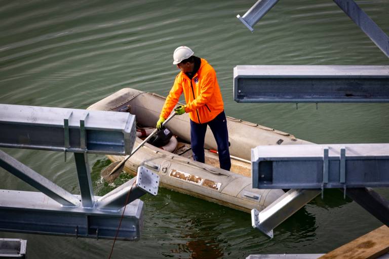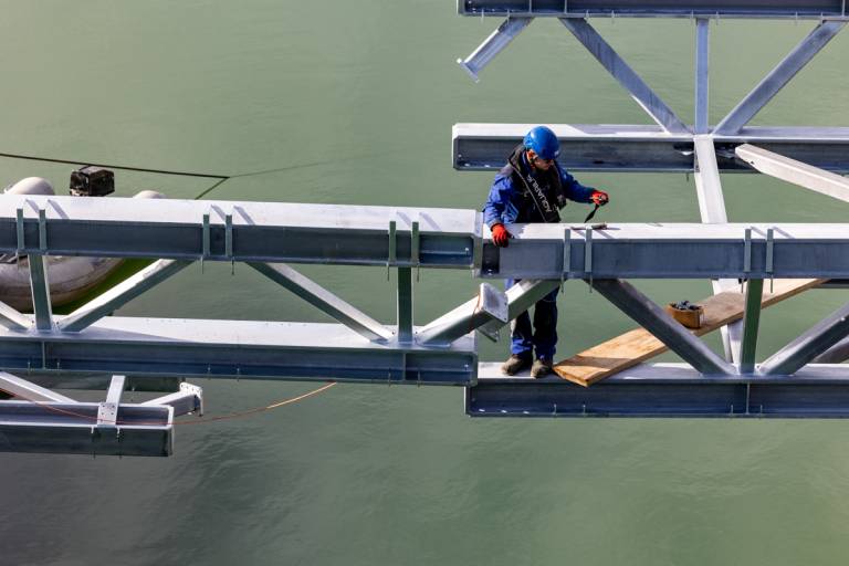 Številni Mariborčani in drugi mimoidoči se še vedno radovedno ustavljajo na mariborskem Glavnem mostu in opazujejo dela, ki jih izvaja Makro 5 gradnje, za novonastajajočo brv Lent - Tabor.