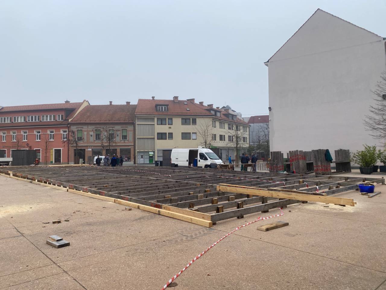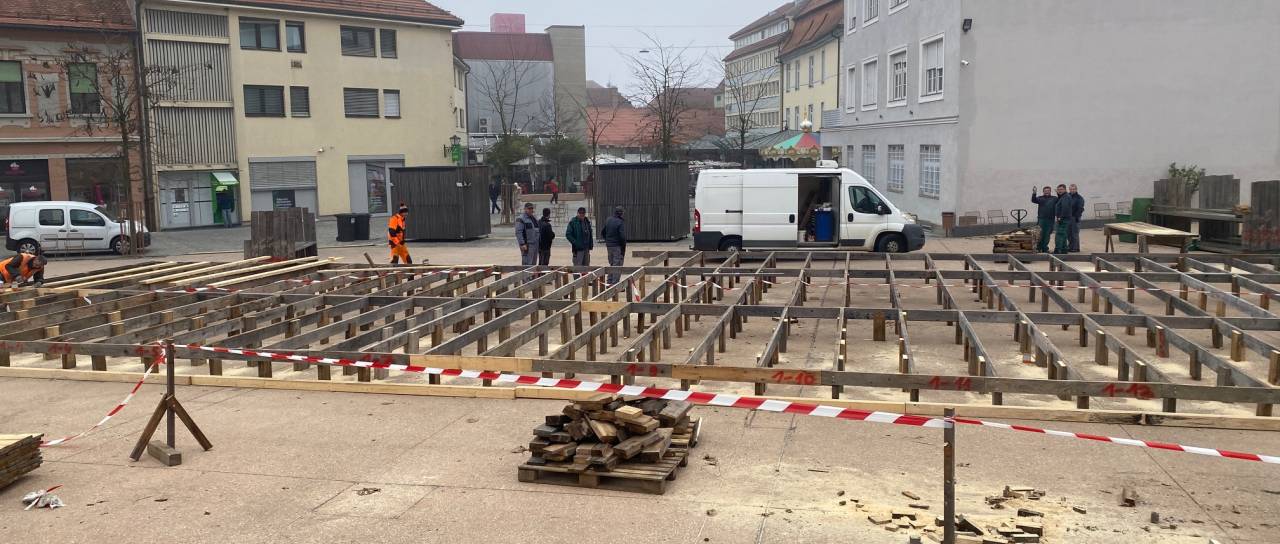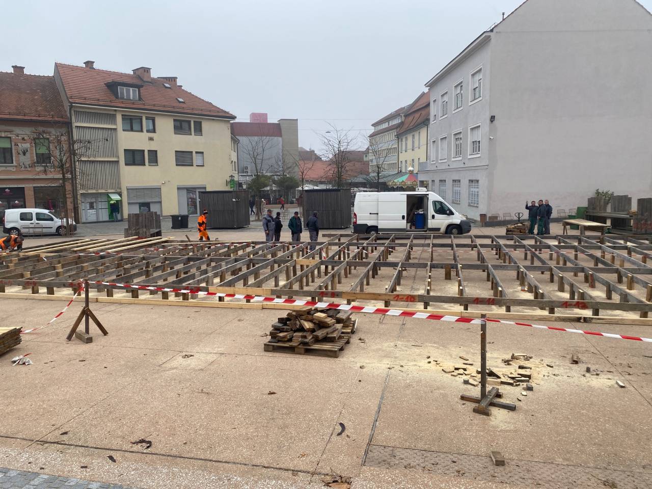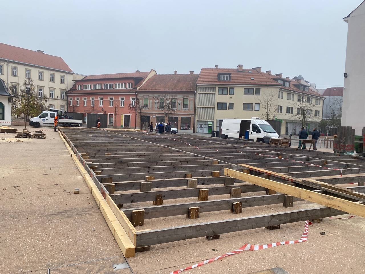 Prav tako so na Glavni trg pripeljali lesene deske za postavitev ogrodja drsališča, ki zdaj že dobiva svojo podobo in bo kmalu razveseljevalo obiskovalce Ptuja. Tako kot pretekla leta bo uporaba drsališča brezplačna za vse obiskovalce, so sporočili iz ptujske občine.