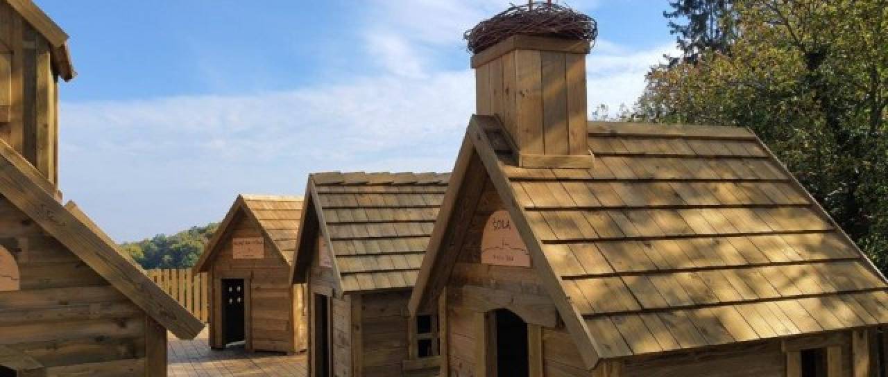 Objekte v pomanjšanem merilu je izdelalo Podjetje za gozdne gradnje in hortikulturo iz Maribora, ki je premagalo vse logistične ovire pri prevozu hišk na Sveto Ano.