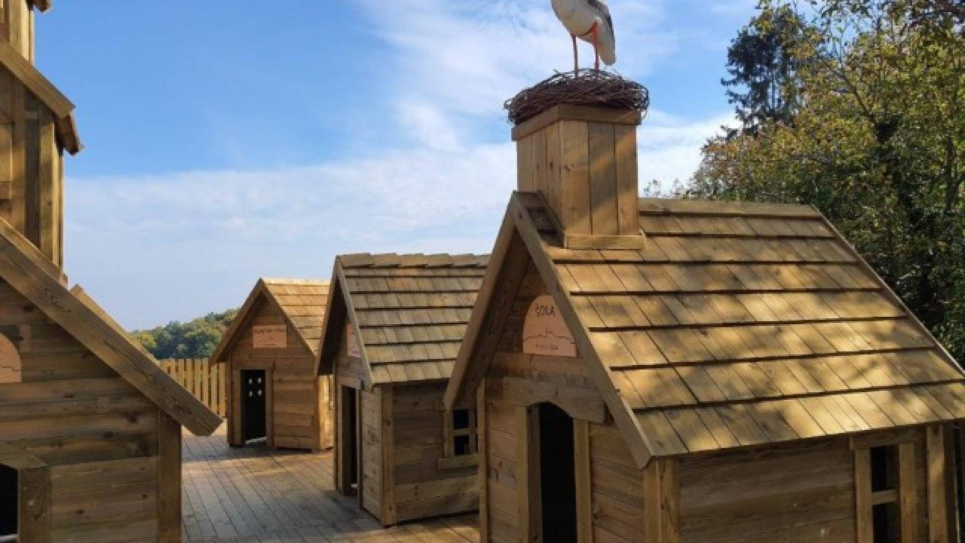 Hiške v miniaturni vasici, ki je postavljena v neposredni bližini Osnovne šole Sveta Ana, so postavljene v takšnem merilu, da lahko vanje splezajo le otroci.