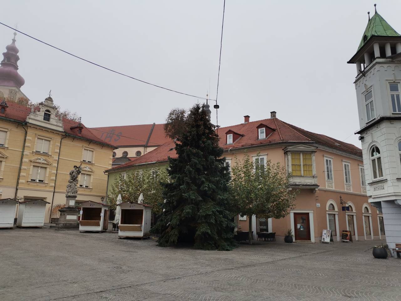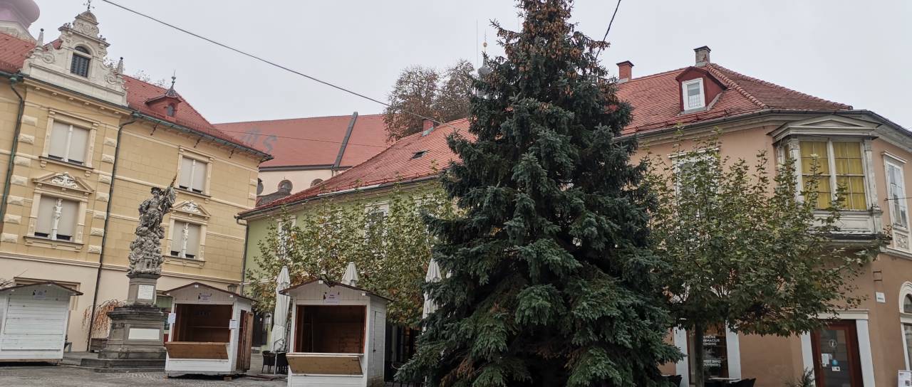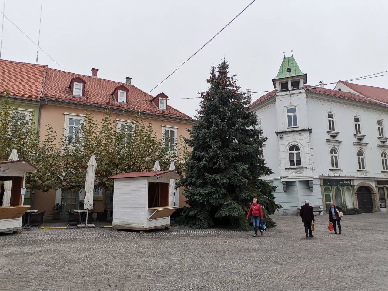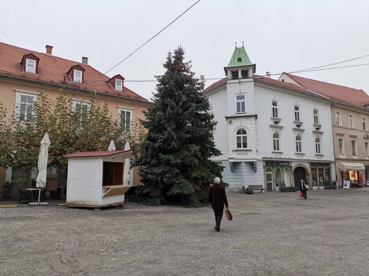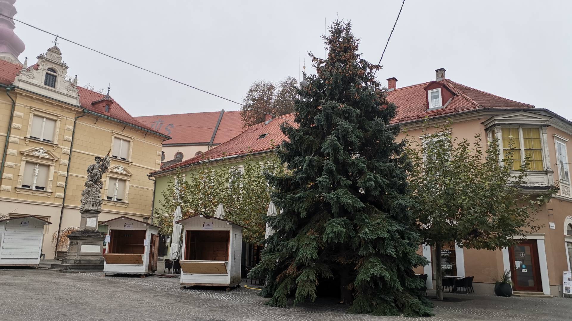 Pa jo imamo! Prva novoletna smrečica že stoji sredi mesta, na Mestnem trgu. Prav danes so jo postavili na svojo tradicionalno lokacijo.