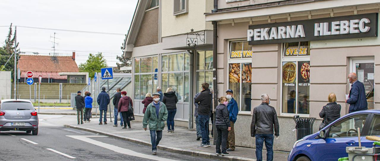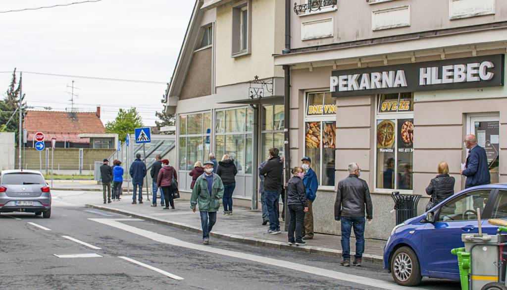 Največ ljudi sicer ni bilo pred danes ponovno odprtimi trgovinami, temveč pred bankami.