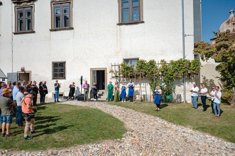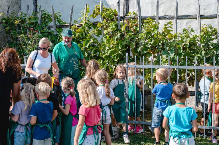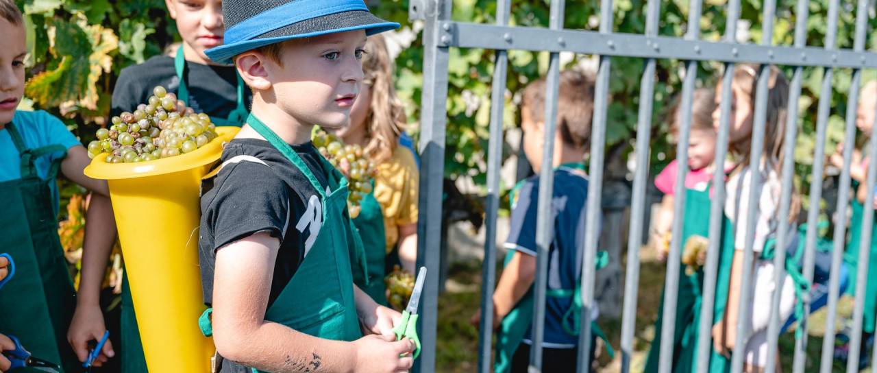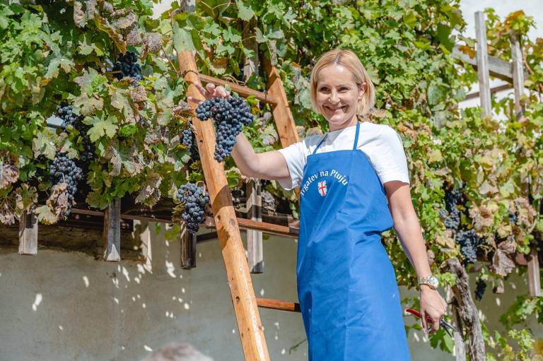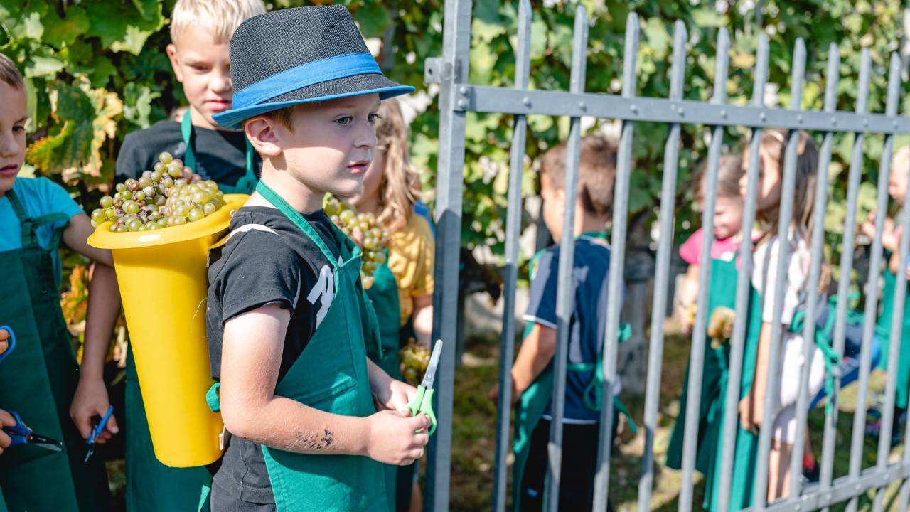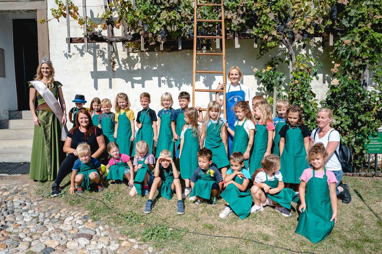 Na trgatvi na Ptujskem gradu so letos prvič prisostvovali tudi najmlajši, in sicer otroci iz enote Tulipan Vrtca Ptuj, ki so pomagali trgati grozdje.