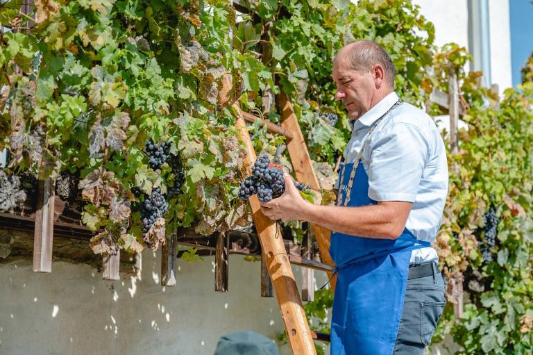 Letošnja jesen je obiralcem grozdja postregla z lepim vremenom – takšnega smo bili deležni tudi na ptujski trgatvi modre kavčine - žametne črnine, ranfola in ziefandlerja.