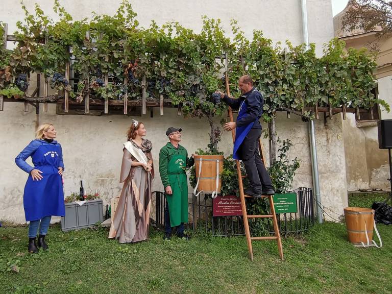 Ptuj pa ima celo čas posedovati potomko najstarejše trte na svetu. Grozdje je dozorelo, danes pa je čas, da so jo slavnostno obrali.