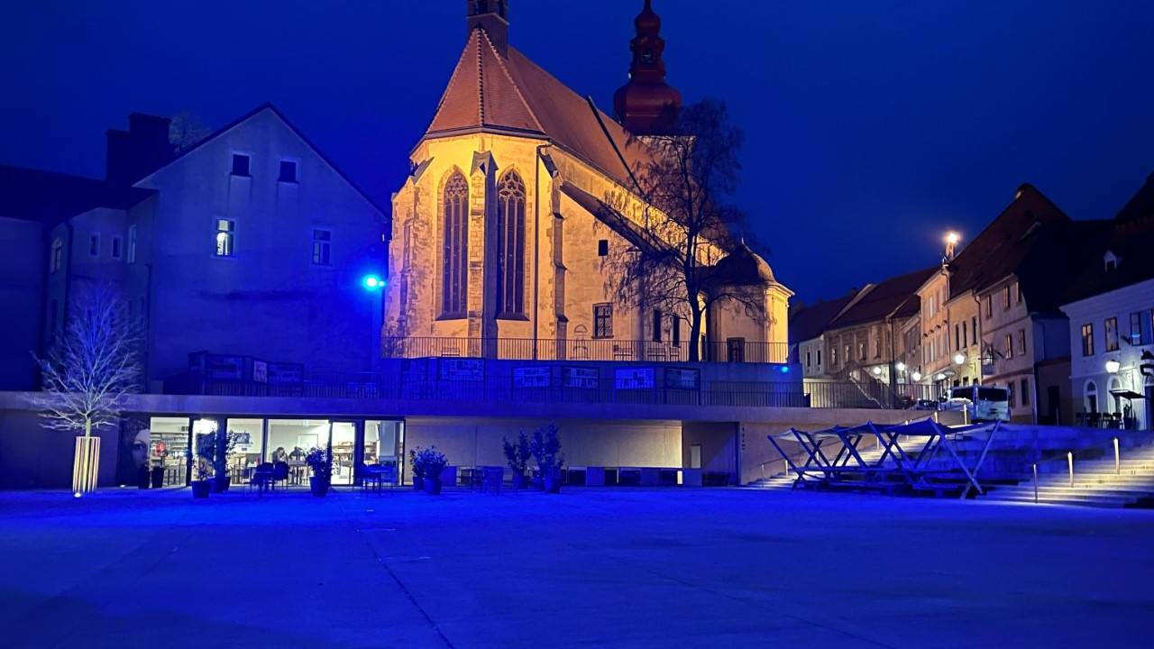 Ptujska tržnica je obarvana modro. Tako mesto sodeluje pri ozaveščanju o avtizmu.