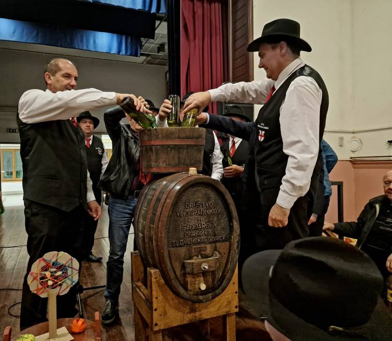 Letošnji Martinov praznik pa je na Ptuju posvečen tudi 25-letnici Društva vinogradnikov in sadjarjev Osrednje Slovenske gorice. Kot veli tradicija so prinesli mošt in ga zlili v skupni sod, po blagoslovu patra Andreja Feguša pa so nazdravili z mladim vinom.