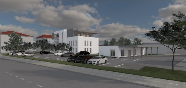 Iz načrtov je razvidno, da bo ob novi poslovni stavbi tudi paviljon s prostori za Medobčinsko društvo slepih in slabovidnih Murska Sobota, ki je delni lastnik stavbe.