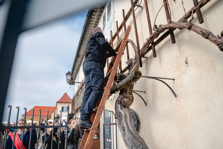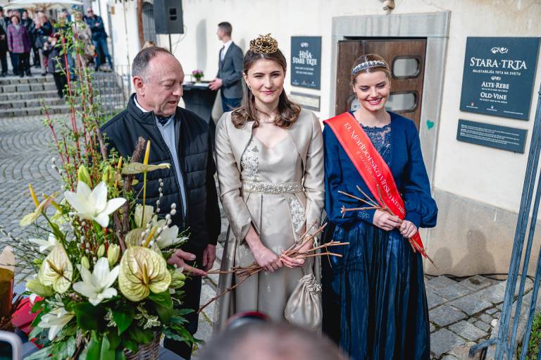 Ob 11. uri smo bili priča 45. rezu najstarejše trte na svetu. Po tem, ko se je lanska prireditev zaradi prenove Lenta odvila na Vojašniškem trgu, se je letos preselila nazaj na klasično lokacijo - pred Hišo Stare trte.