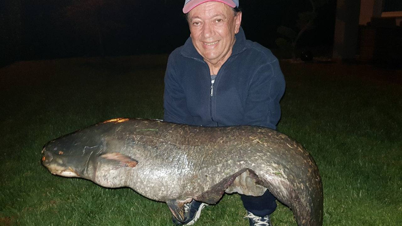 Ribič je v Gajševskem jezeru ujel soma velikana, težkega kar 24 kilogramov.
