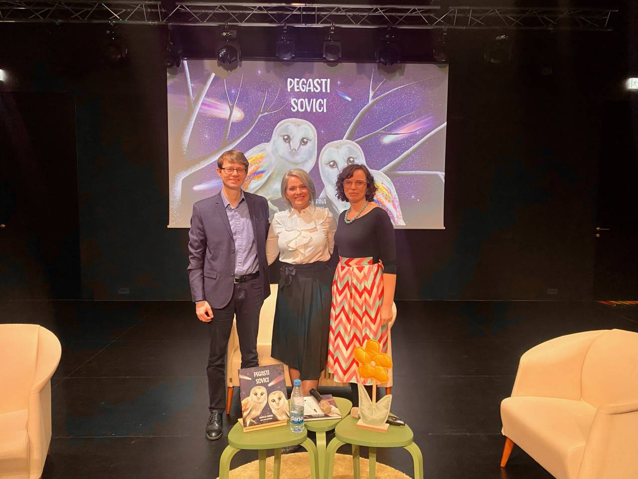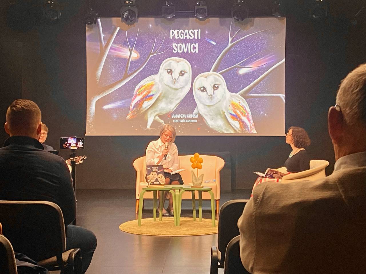 V veliki dvorani Stare steklarske, Mladinsko kulturnega centra Ptuj, je na dan žena, 8. marca, potekala predstavitev zbirke pravljičnih zgodb Pegasti sovici.