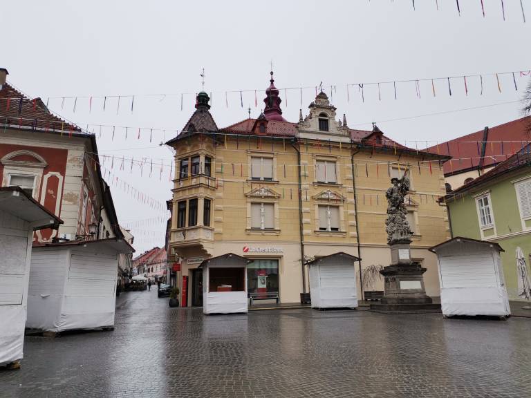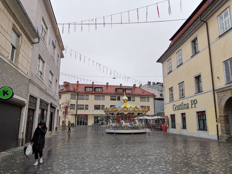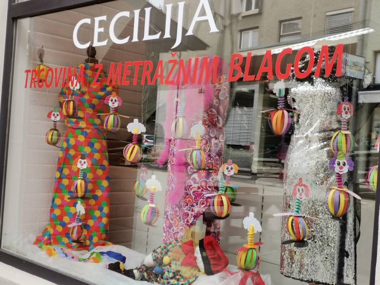 Ptuj je že pustno okrašen, mnoge izložbe so v znamenju pustnih mask in likov, mesto pa je nagajivo pisano.