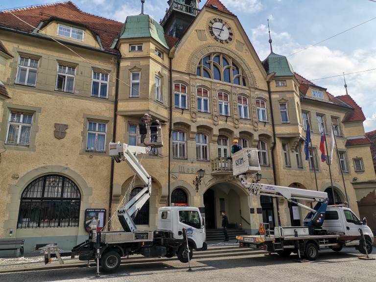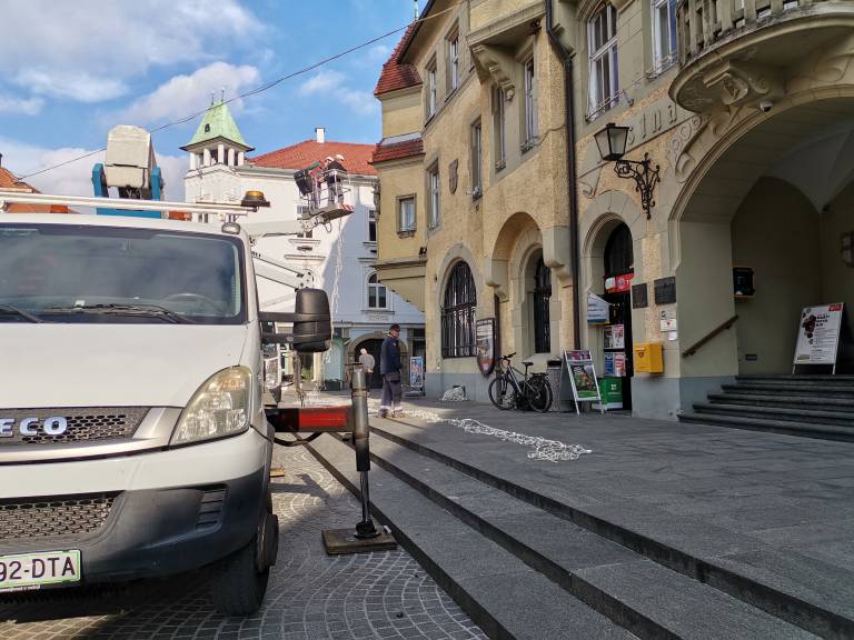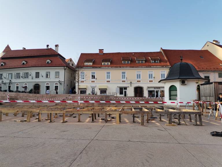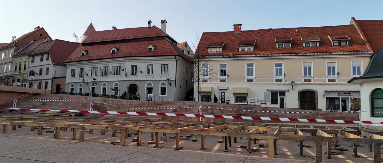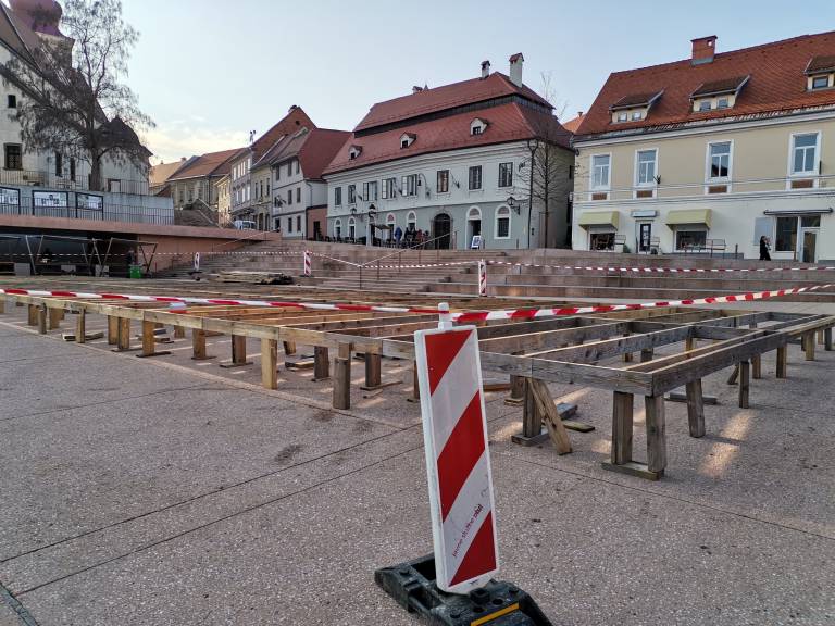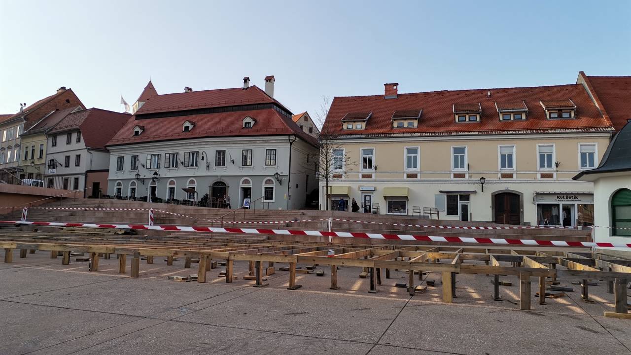 V središču Ptuja so začeli s postavljanjem drsališča.