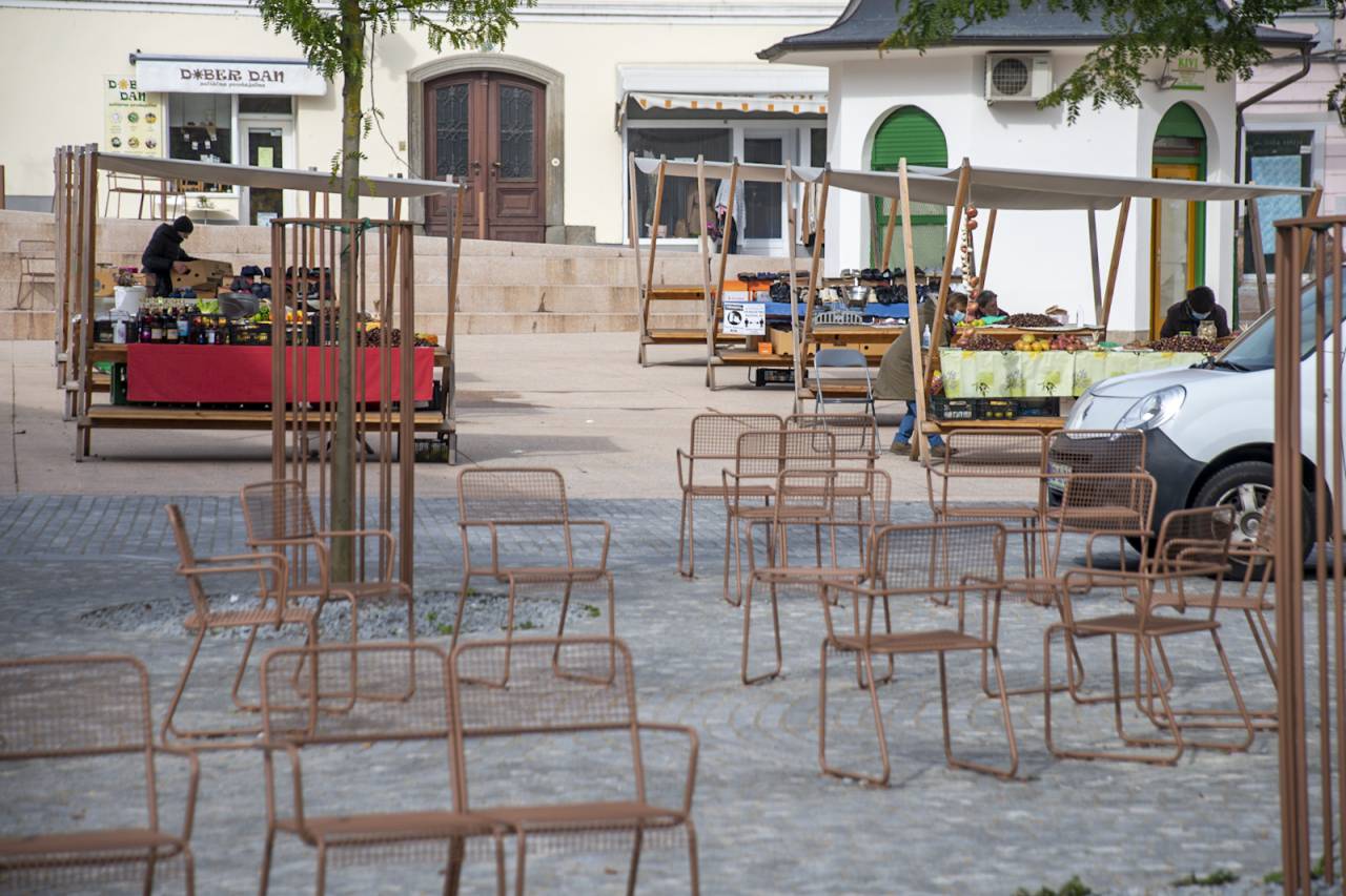 Nekaj ljudi poseda na klopeh, največ obiskovalcev ima ptujska tržnica, ampak je to daleč od običajne sobote v najstarejšem mestu.