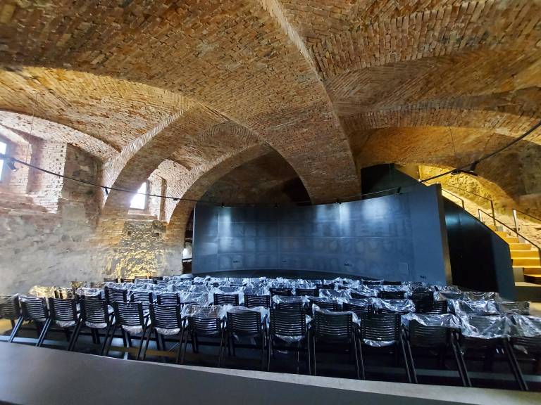 Vrednost prenove je ocenjena na 936.000 evrov, v sklopu prenove pa sta uredili dve prizorišči, spodnje in zgornje prizorišče. Spodnje prizorišče je namenjeno manjšim prireditvam, kot so glasbene in kulturne predstave, ki obsega sto sedišč, zgornje prizorišče pa je namenjen izobraževalni in galerijski dejavnosti.