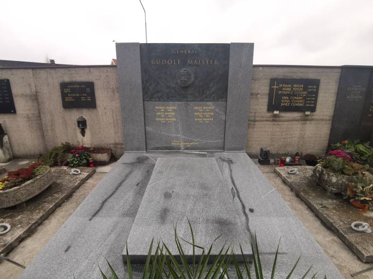 Tam so ga položili v eno izmed običajnih skromnih grobnic. Kot je povedal Arih, je nenadna generalova smrt mestno oblast presenetila do te mere, da ni utegnila pravočasno pripraviti nove grobnice, ki bi odražala Maistrovo veličino.