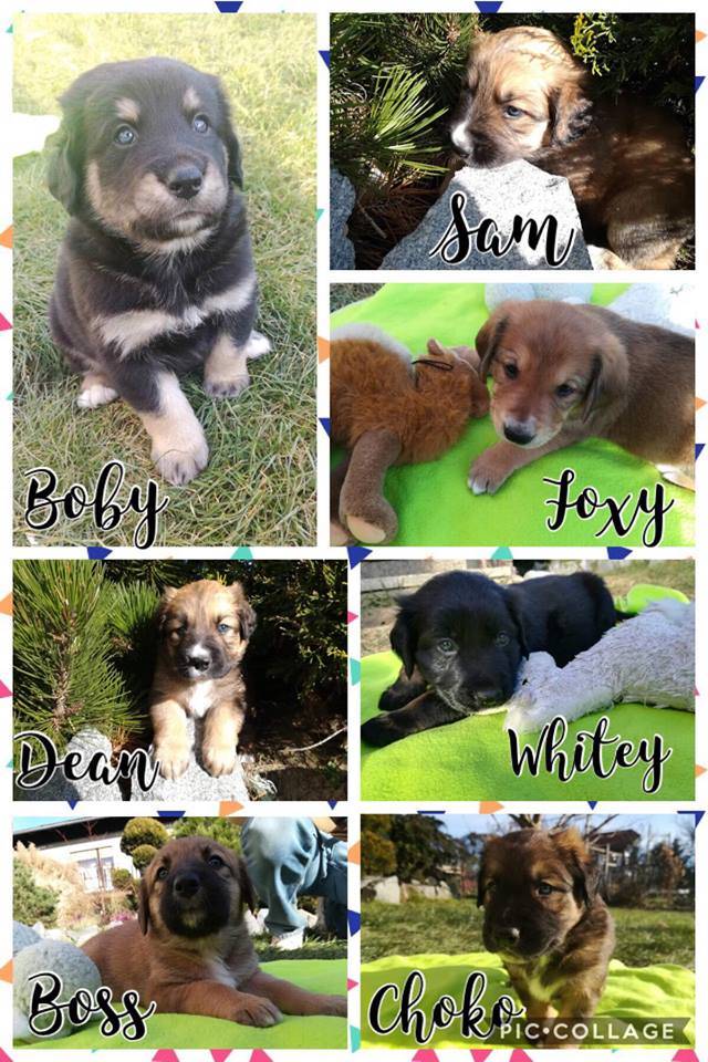 Mladički so mešanci, saj je mama mešanka z bernskim planšarjem, medtem ko je oče neznan. Najverjetneje se je zaljubila v sosedovega psa in tako so na svet prikukali 12. decembra.
