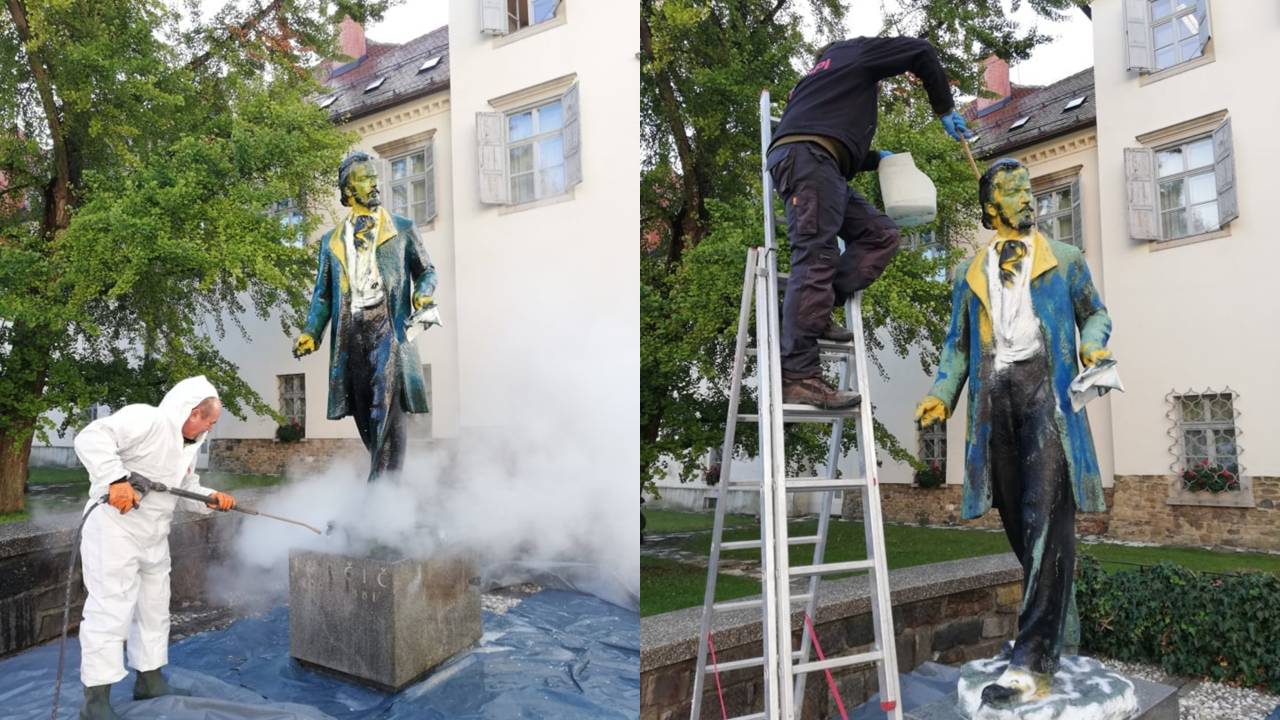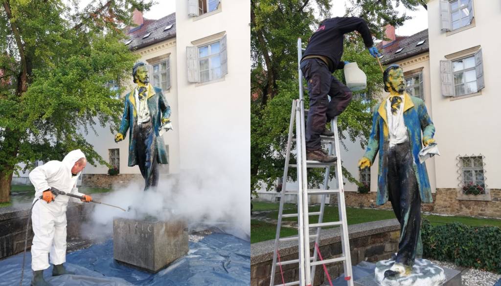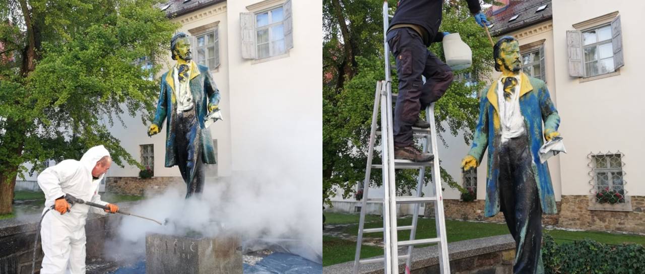 Neznanci so v Mariboru poškodovali spomenik Josipa Jurčiča in povzročili za 7000 evrov škode. Spomenik je zdaj dočakal čiščenje.