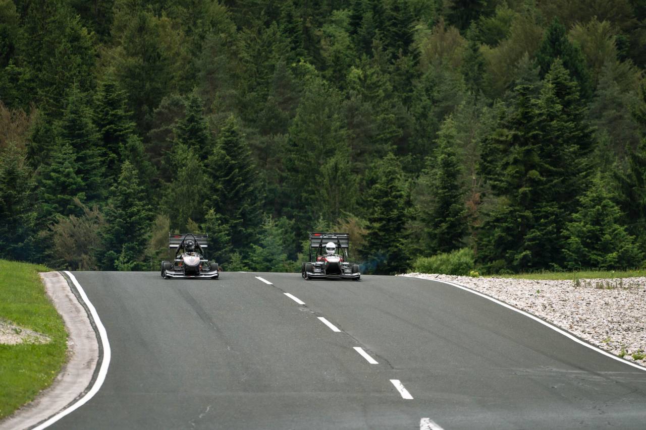 Ob predstavitvi dirkalnika 'nove dobe' je asfalt zagrabila tudi aktualna izvedenka Formule Študent z motorjem na notranje zgorevanje, ki je častni krog opravila v zavetrju svoje električne naslednice.