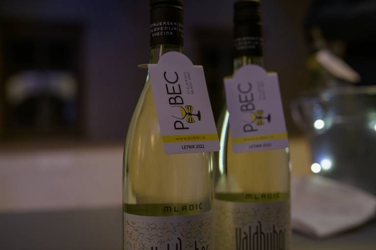 Mlada vina Pubec prepoznamo tudi po tem, da vrat steklenice krasi značilna obešanka z znanim rumenim metuljčkom.