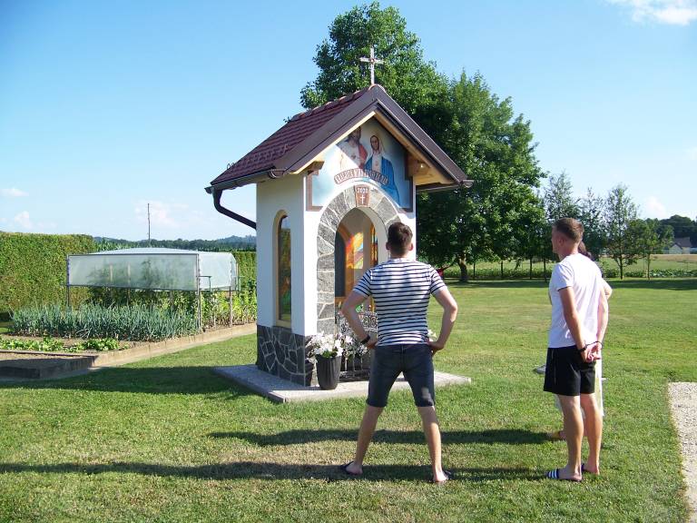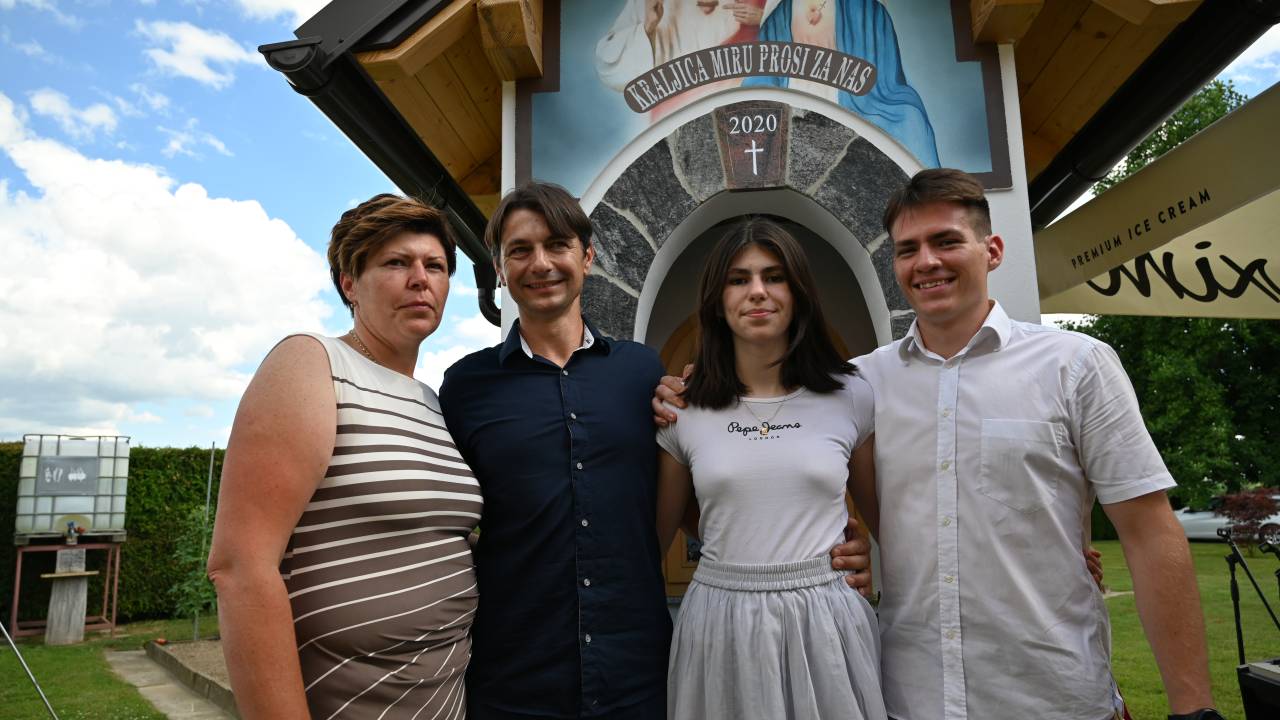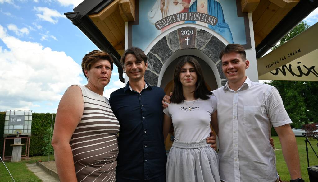 Štiričlanska družina Pihlar, ki prihaja iz Mote pri Ljutomeru se je na domačem dvorišču odločila postaviti novo kapelico v zahvalo za rojstvo otrok Dominika in Anamarije.