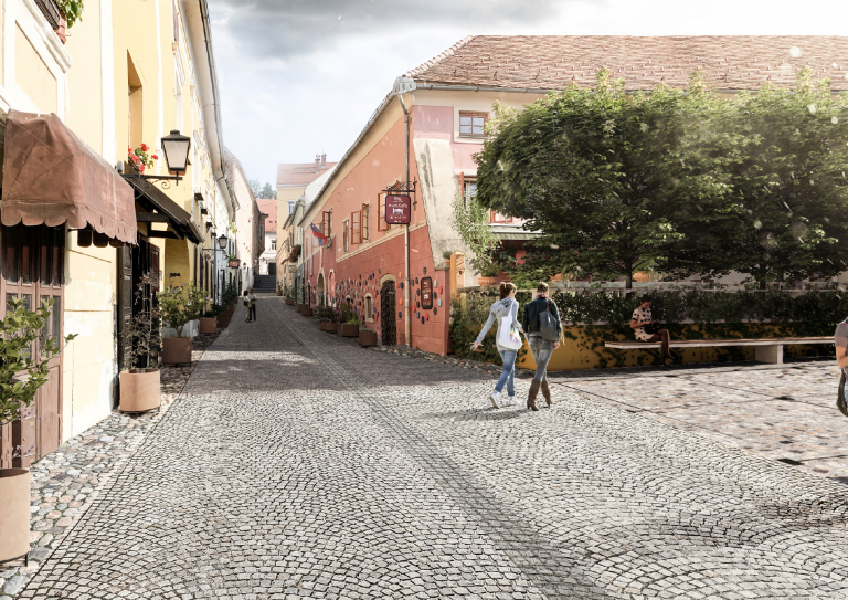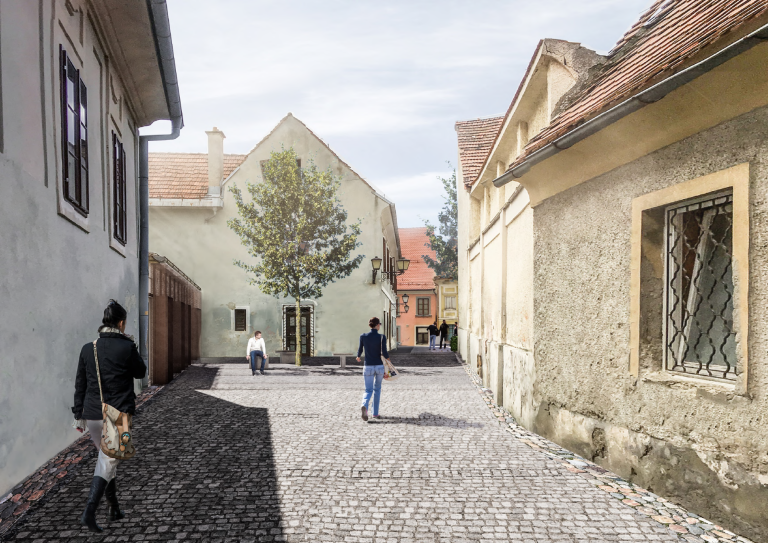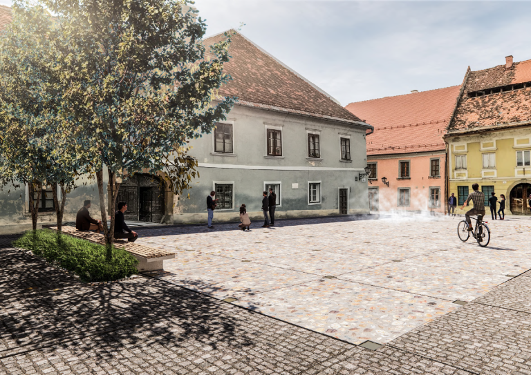 Elaborat predvideva tlakovanje iz granitnih kock, na Vrazovem trgu iz brušenih in rezanih mačjih glav, po stezah in na dvorišču Stare steklarske delavnice pa tlakovanje iz klasičnih mačjih glav, položenih v pesek.