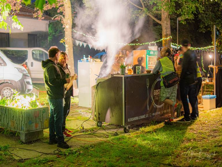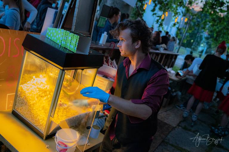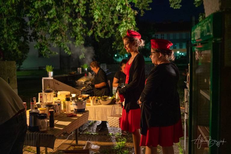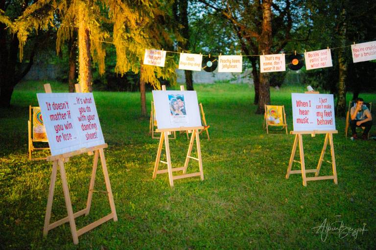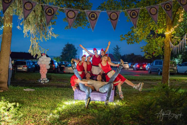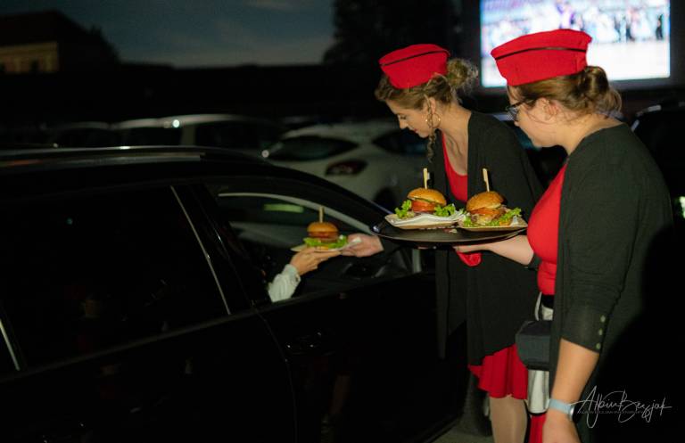 Prizorišče je bilo odprto od 20. ure naprej. Zvok iz filma seje je predvajal prek radijskih sprejemnikov v avtomobilih. Pri drive-in kinu ne gre le za film, temveč za celotno doživetje in vzdušje. Zato so pripravili domiselno tematsko gostinsko ponudbo s strežbo na kotalkah.