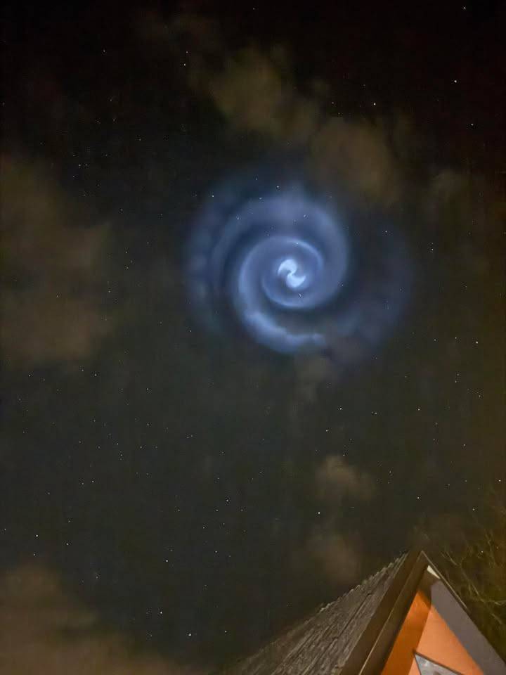 Nenavadna modra spirala, ki je sinoči preletela nebo nad Slovenijo, je pritegnila pozornost številnih opazovalcev. Tudi na Ptujskem.