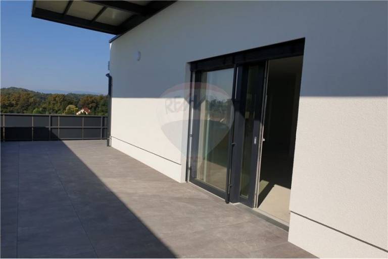 Stanovanje obsega predprostor, tri spalnice, dnevni prostor, kopalnico in ločene sanitarije. Stanovanje ima tudi teraso, ki je velika 80 kvadratnih metrov.
