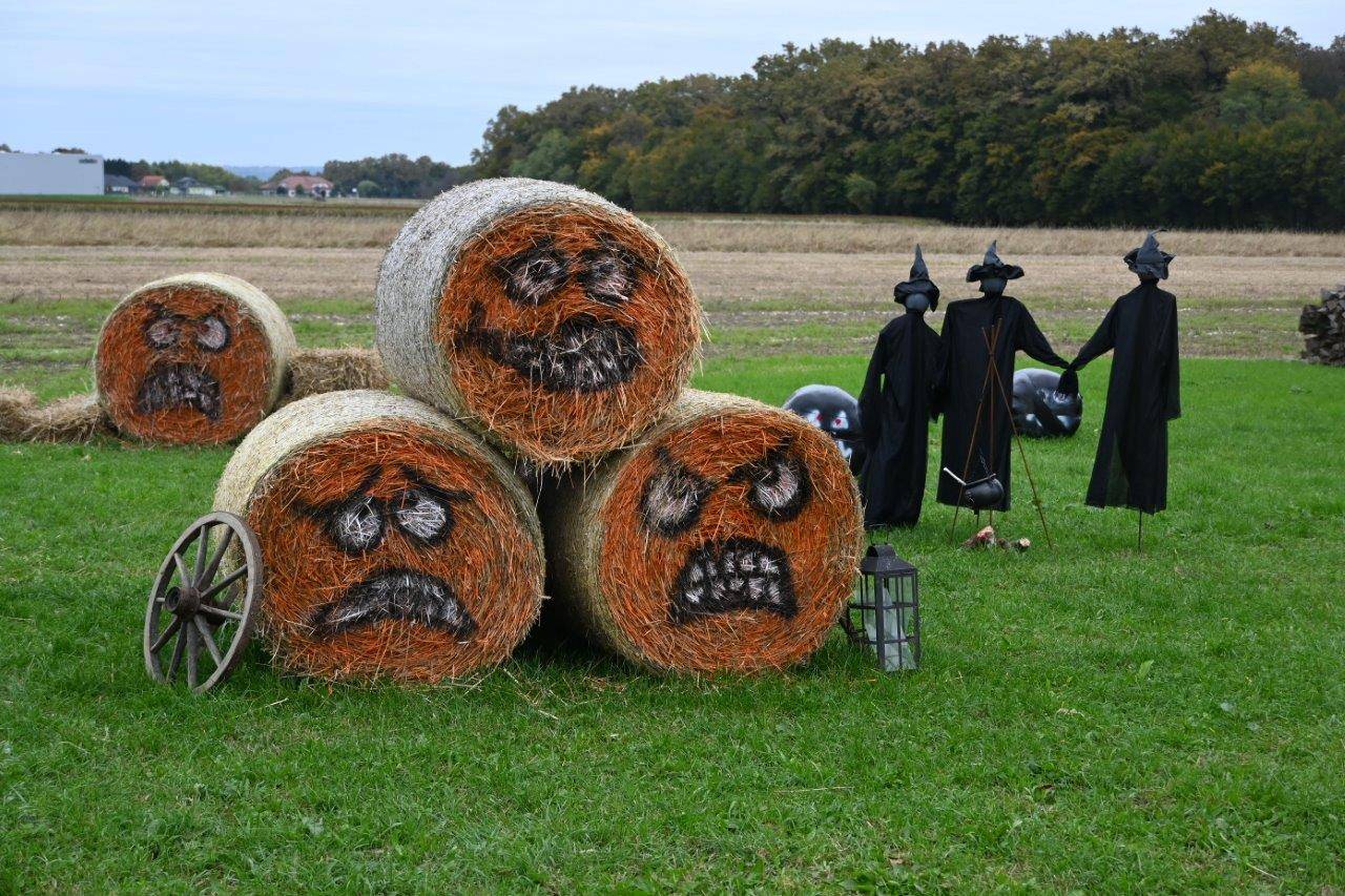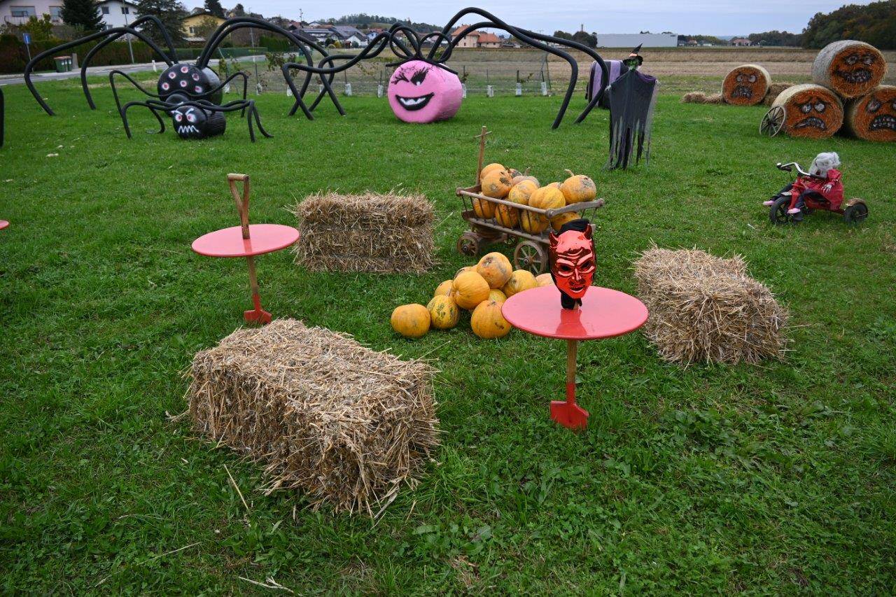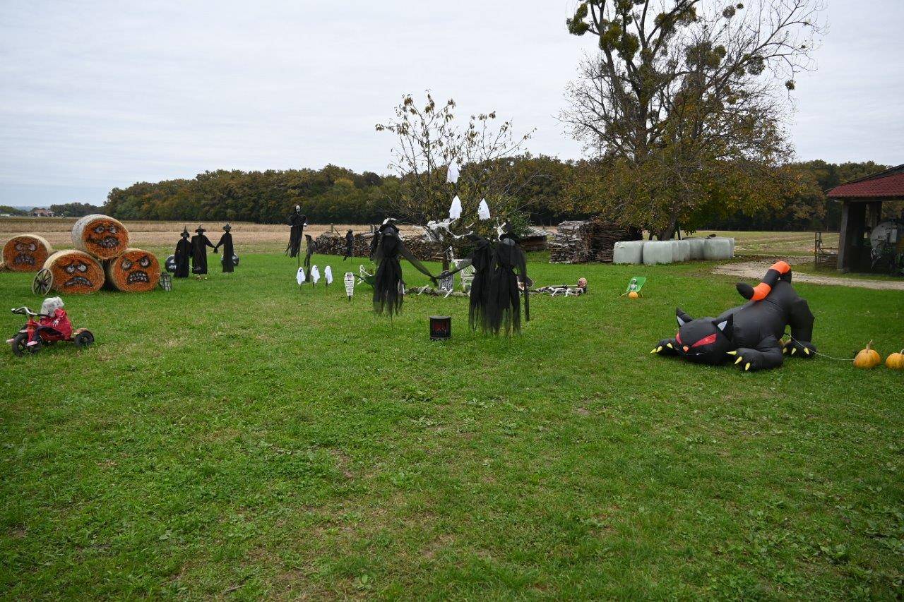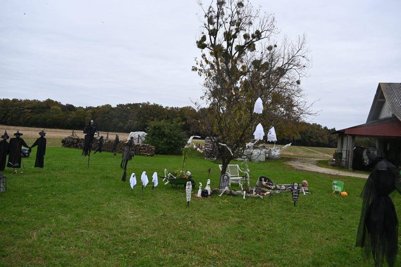 Na obsežnem dvorišču in na trati v okolici hiše ter ob gospodarskih poslopjih pa so za praznik čarovnic razstavili tudi različne strašljive like.