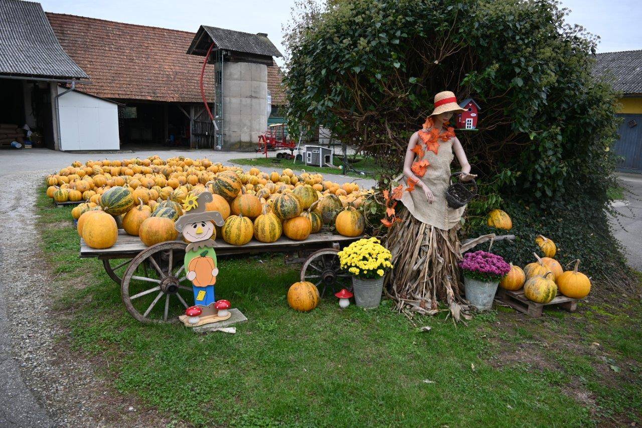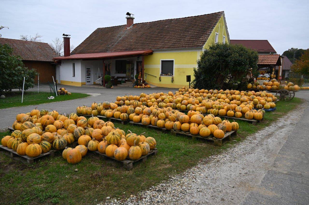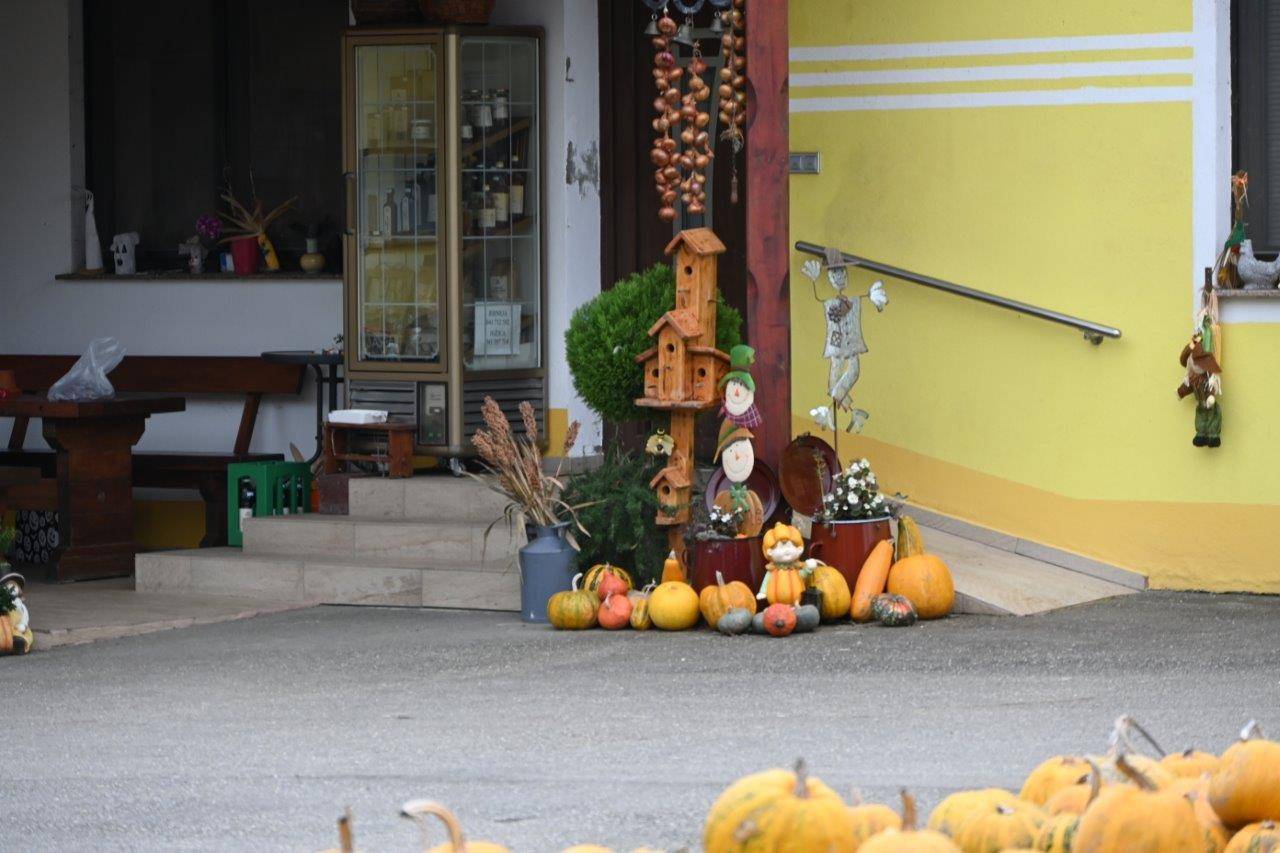 Kmetijo v Črešnjevcih krasi razstava buč za noč čarovnic.