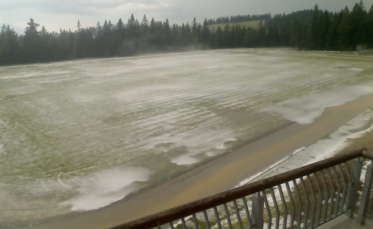 Neurje že besni nad Slovenijo, toča pobelila Roglo.