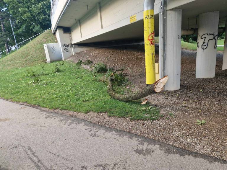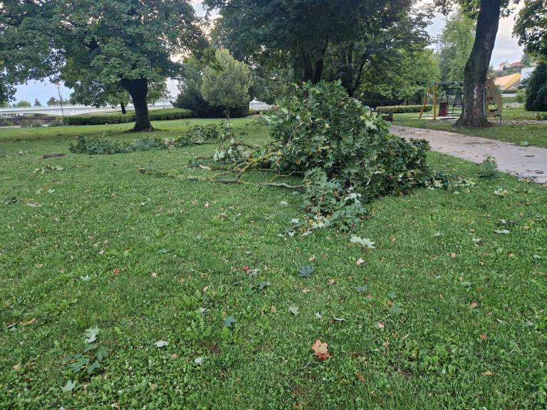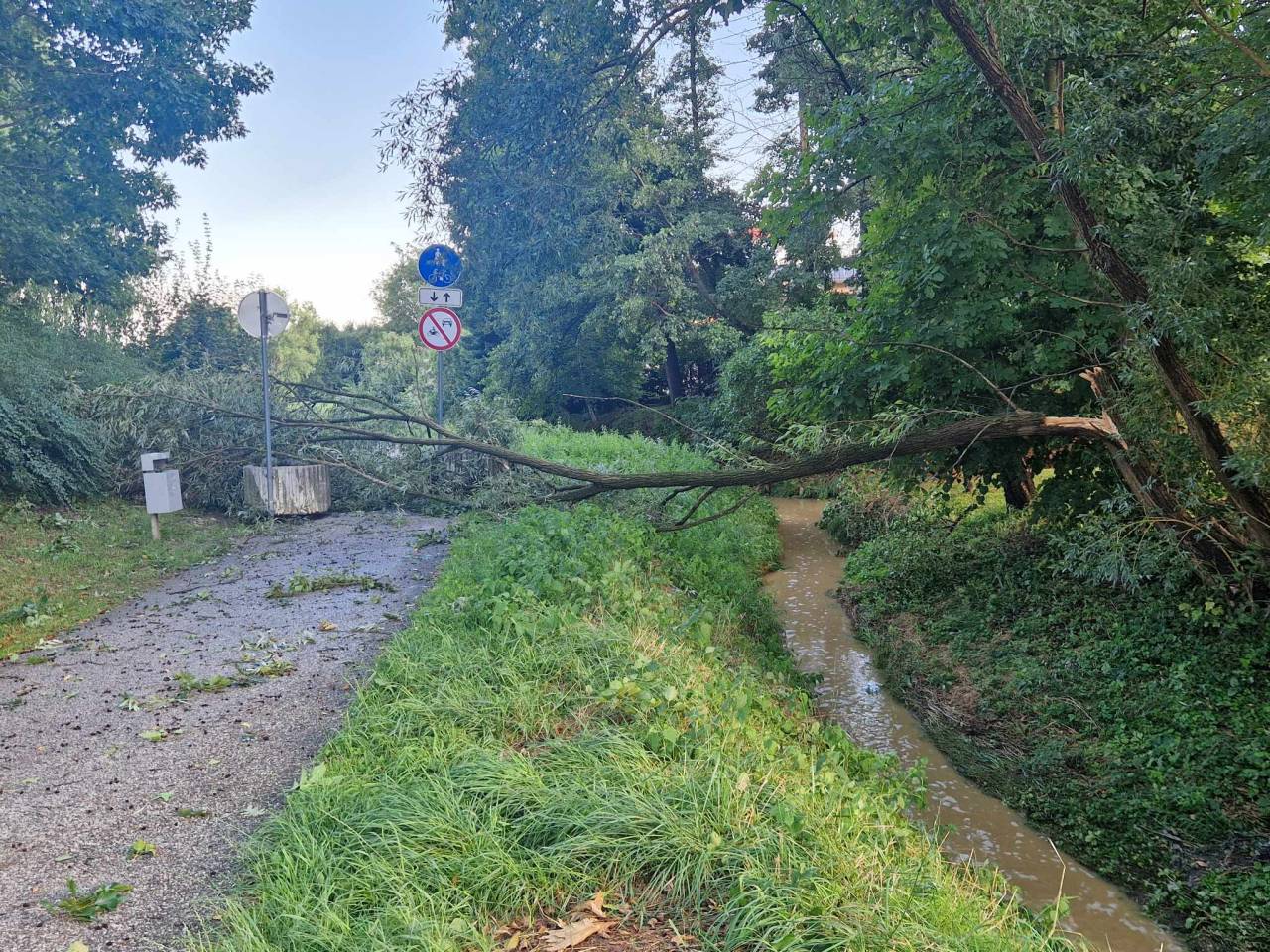 Policisti pa so včeraj sporočili še tragično novico. Neurje je na območju Bleda terjalo smrtno žrtev. Na Policijski upravi Kranj so za STA povedali, da se je v času neurja prelomilo drevo in padlo na dve osebi.