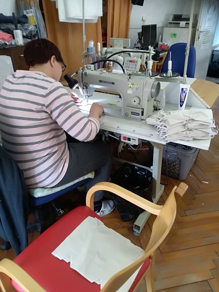 Z namenom povečati neodvisnosti od dobav zaščitnih mask so v Socialno varstvenem zavodu Hrastovec pričeli s šivanjem lastnih pralnih mask.