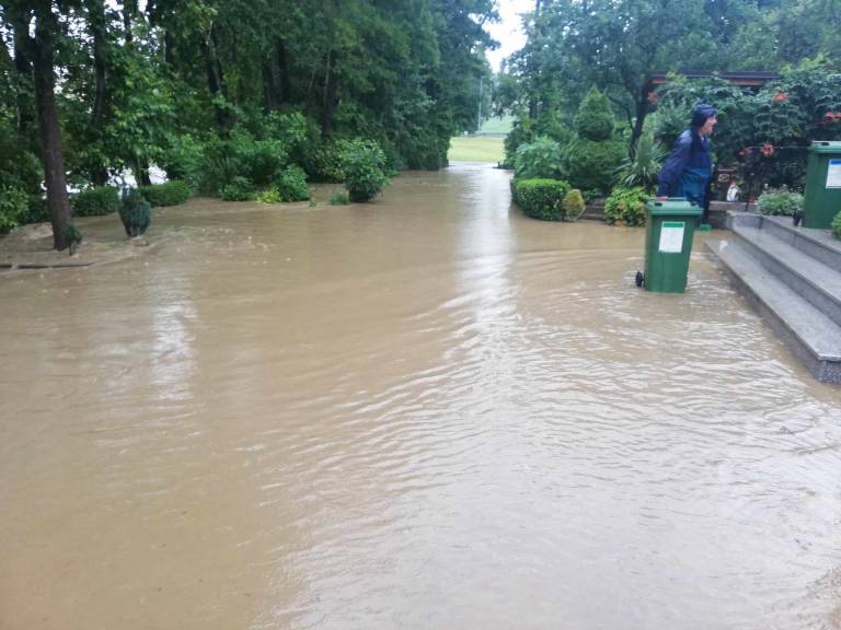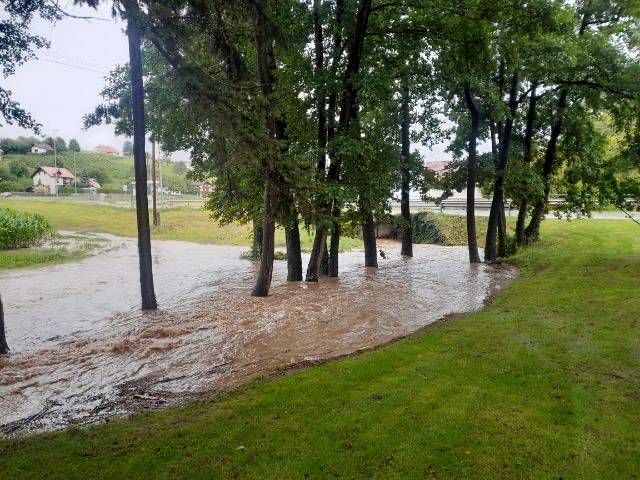 Plaz je bil posledica dejstva, da je v eni uri padlo več kot 40 litrov vode na kvadratni meter. Takoj sta poklicala gasilce na pomoč, ti so prišli v 15 minutah, a vsi skupaj so lahko sprva le opazovali, kaj se dogaja. Takojšnja intervencija bi lahko ogrozila tudi koga iz gasilskih vrst. »In potem sva pa tukaj stala in sva zraven gledala, kako je to lezlo proti nama.«