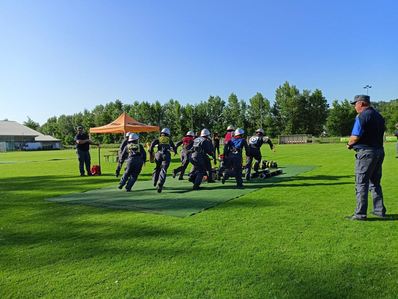 Pomerili so se v vaji z motorno brizgalno ter v štafeti na 400 metrov za člane in članice, pri čemer so tekali po osem krat na petdeset metrov brez ovir.