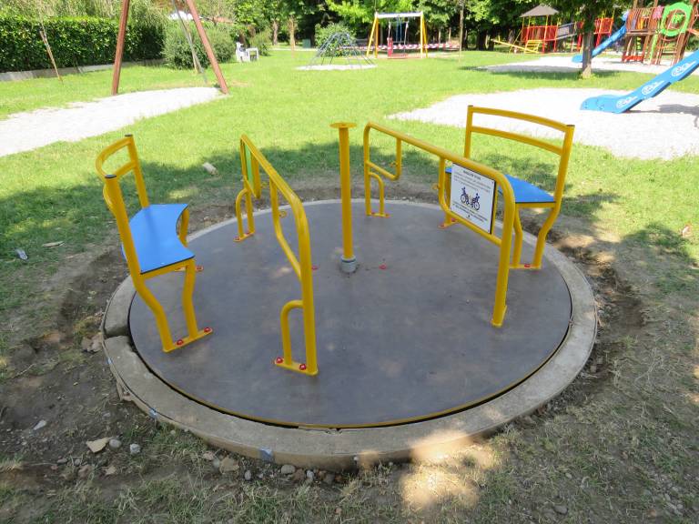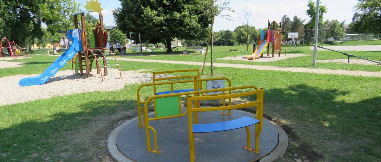 V parku Ljudski vrt so že postavili dve igrali, namenjeni otrokom na invalidskih vozičkih: gugalnico in vrtiljak za invalidne vozičke.