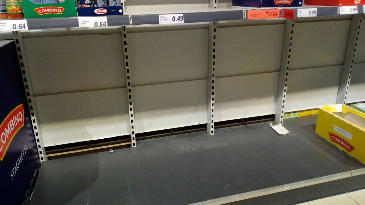 Bralka spletnega portala Ptujinfo nam je poslala fotografije ptujske trgovine, v kateri so police prazne.