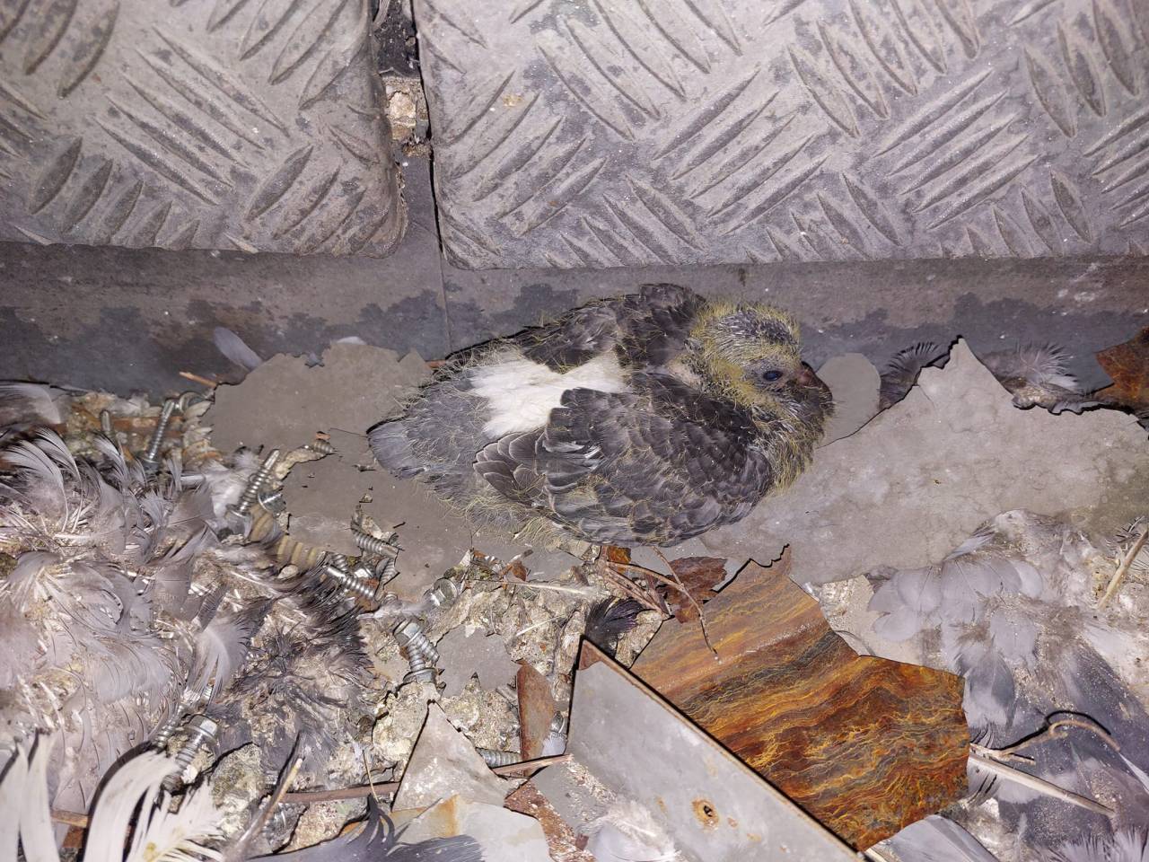 »Parkirna hiša Šentpeter na Zaloški. Zaradi del so golobi pristali na tleh, pometeni na kup. Med njimi sem našla živega mladička, kje so ostali, ne upam pomisliti. Razumem, da so iztrebki moteči. Nikdar pa ne bom razumela, da se z živimi bitji ravna slabše kot s smetmi,« je zapisala.