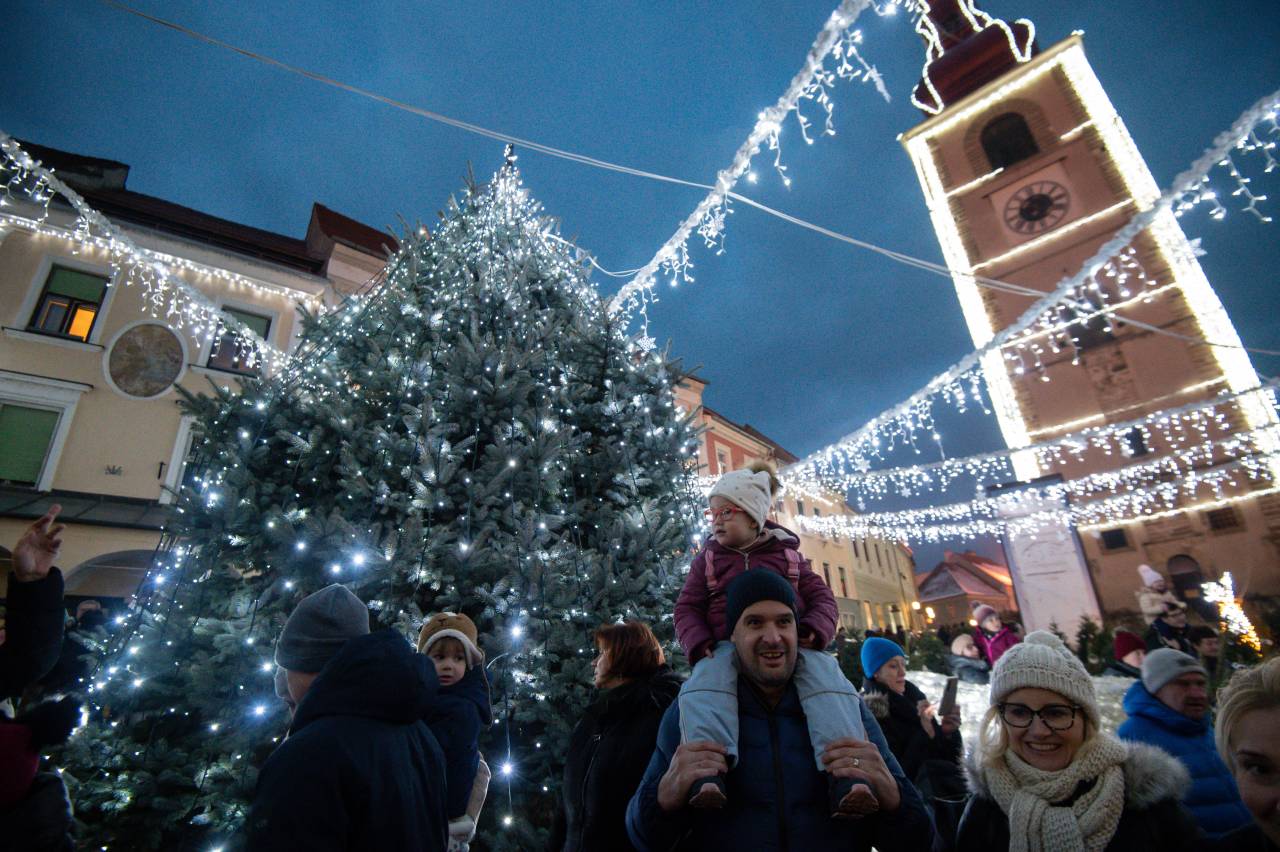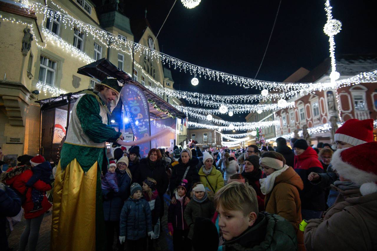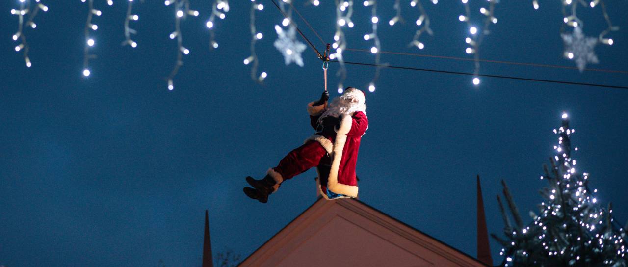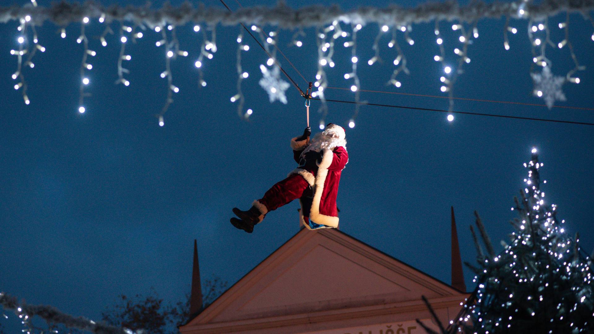 Na Slovenskem trgu se je danes odvil pravi spektakel. Božiček se je v mesto spustil kar z zvonika mestnega stolpa.