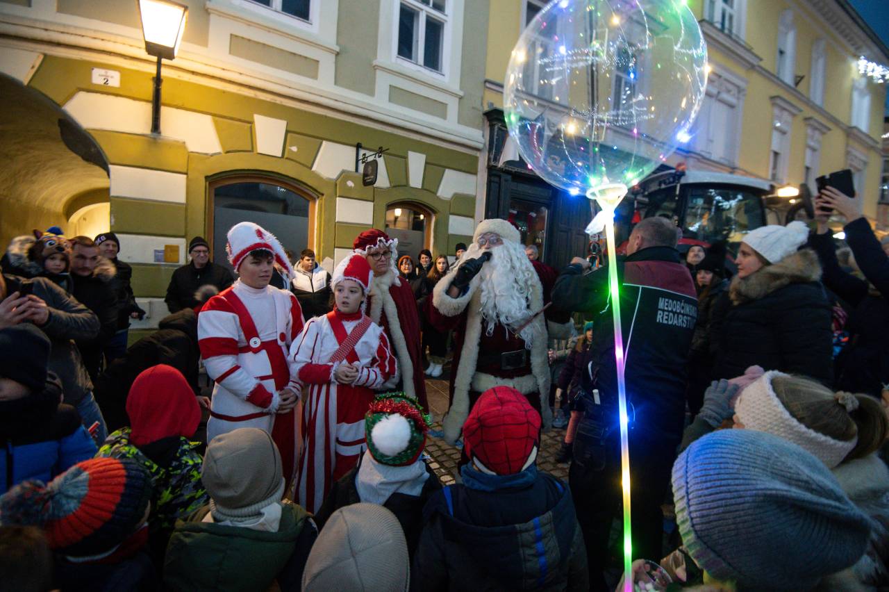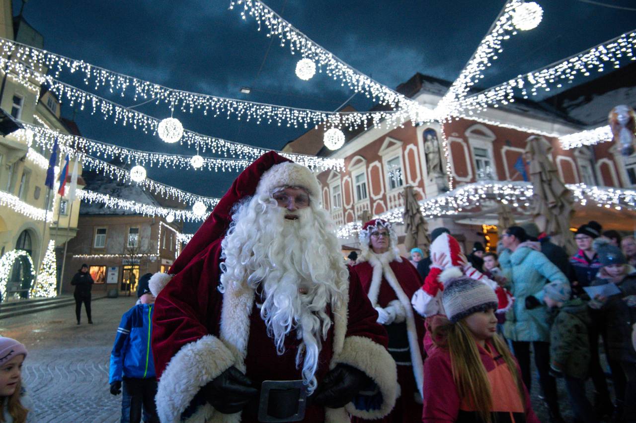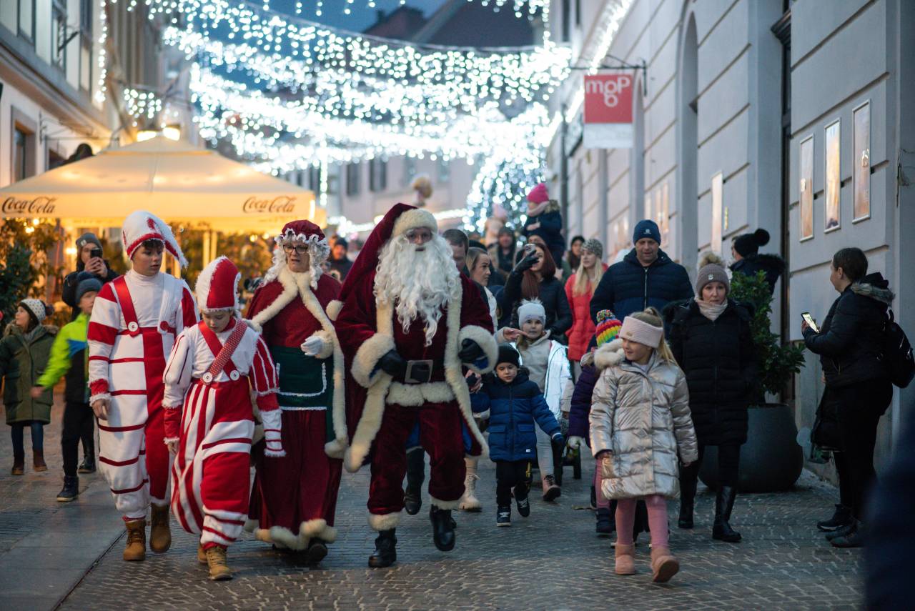 Božiček se je sprehodil še do pravljičnega Mestnega trga, do Miklošičeve ulice, kjer sprejema obiske v Božičkovi pisarni.