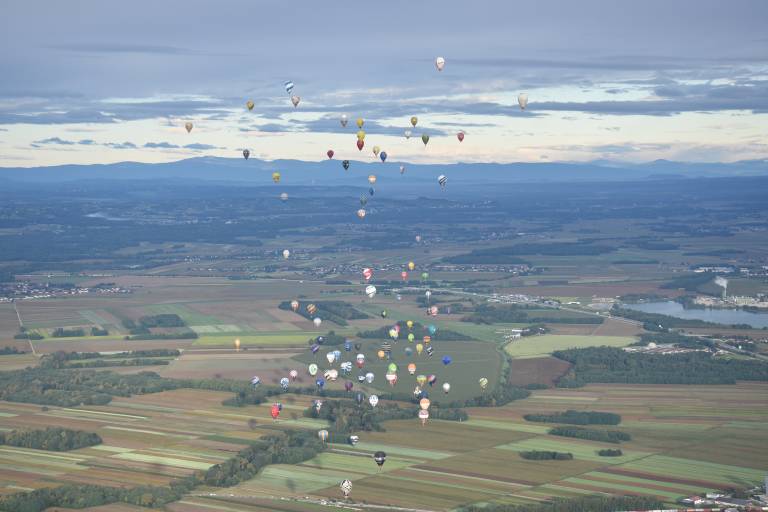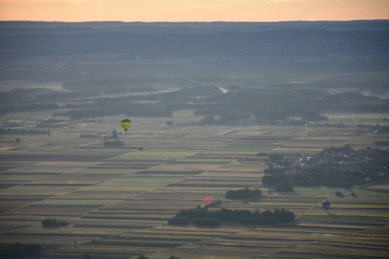 Čez nekaj trenutkov že letimo nad prekmursko ravnico. V družbi tekmovalnih balonarjev se dvignemo vse do 1100 metrov višine.