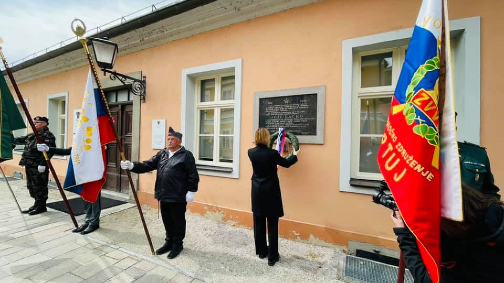 Županja Nuška Gajšek je danes položila venec na spominsko ploščo in pri spomeniku.
