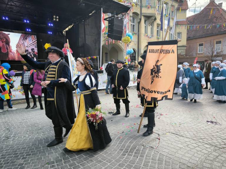 Oblast v mestu znova prevzema županja Nuška Gajšek, ki je na otvoritveni etno povorki ključe do mestnih vrat predala 19. princu karnevala Francescu Guffanteju, ptujskemu mestnemu sodniku.