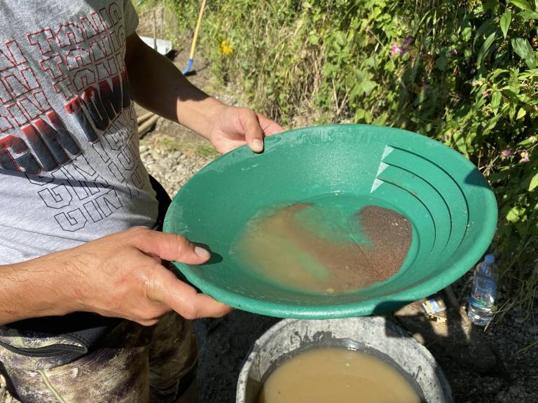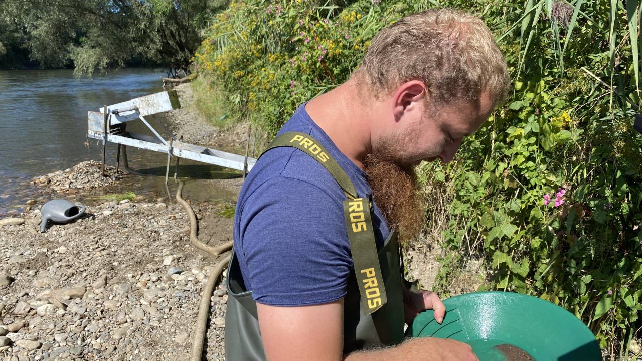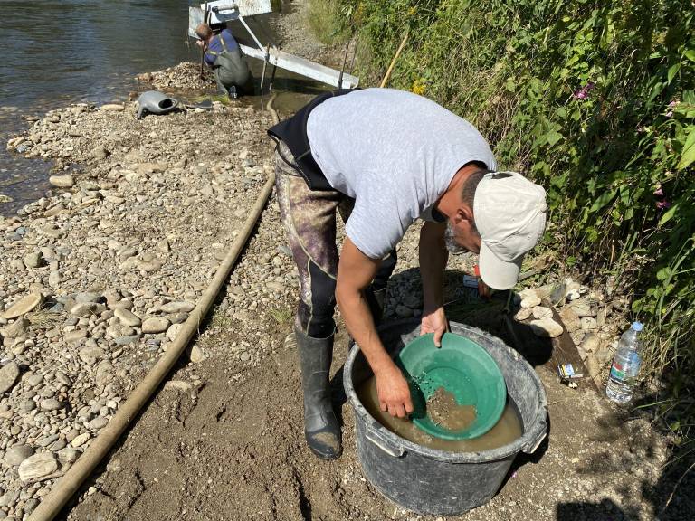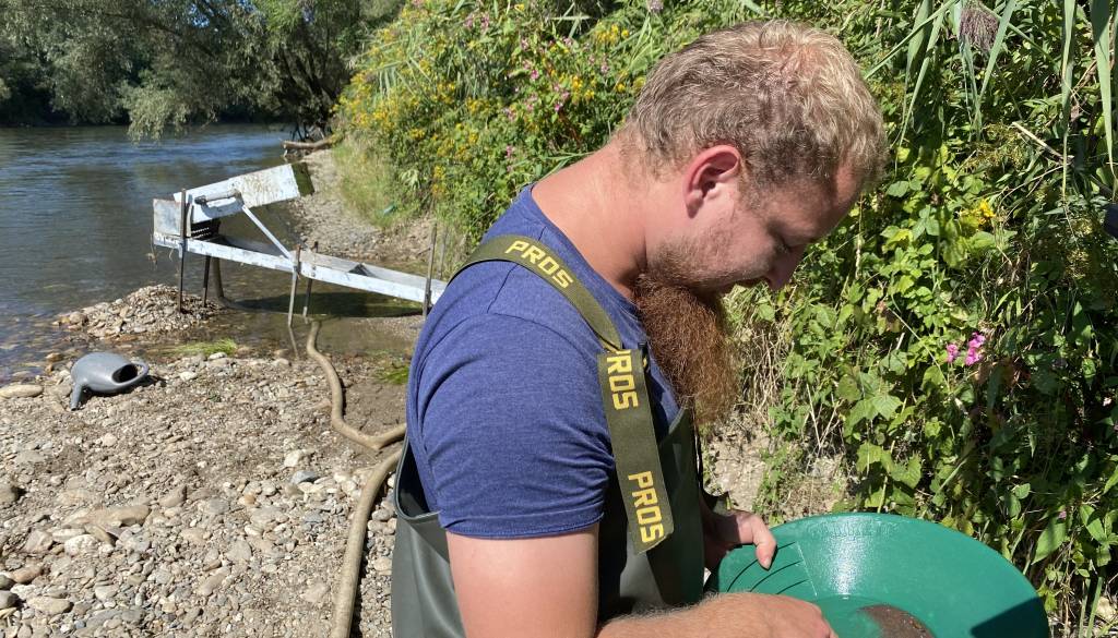 Danijel na vsaki lokaciji najprej preveri, ali je zlatonosna, to pomeni, da je treba najti pet do deset luskic. Če je lokacija prava, se delo lahko začne.