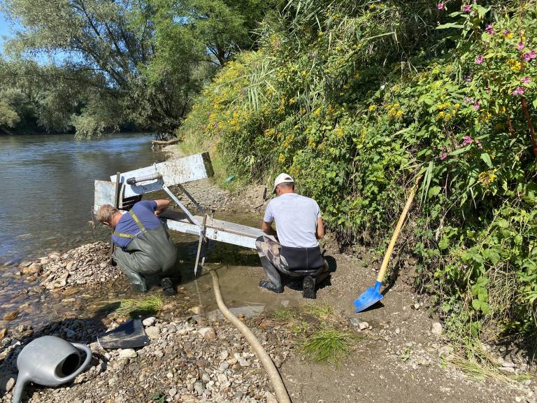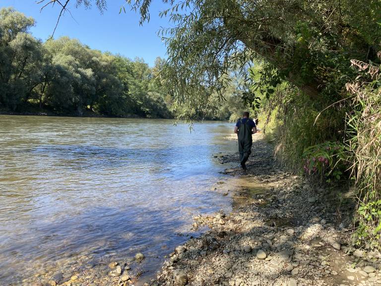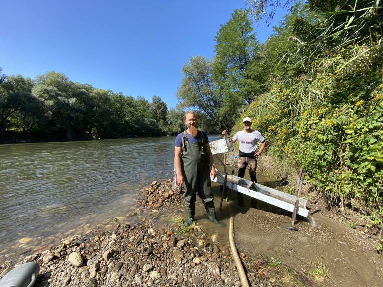 Do skrivnega kraja ob reki Muri, kjer Danijel Bedek s prijateljem išče zlato smo se z avtomobilom le s težavo prebijali. Ko se je pot končala, smo nadaljevali peš in prispeli na dogovorjeno lokacijo.
