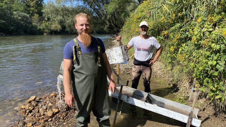 »Težji material gre v spodnje korito in se zlato potem tam zagozdi v mreže noter,« razlaga Danijel.