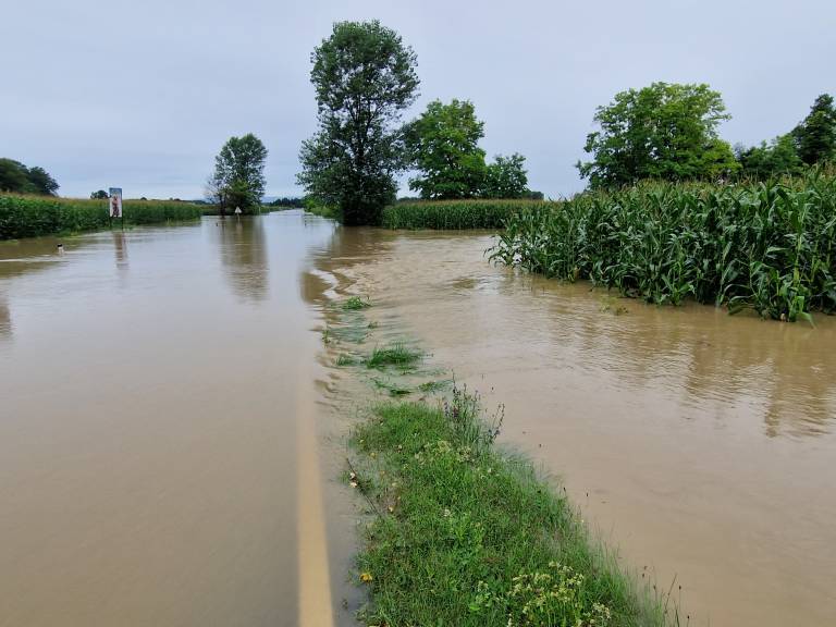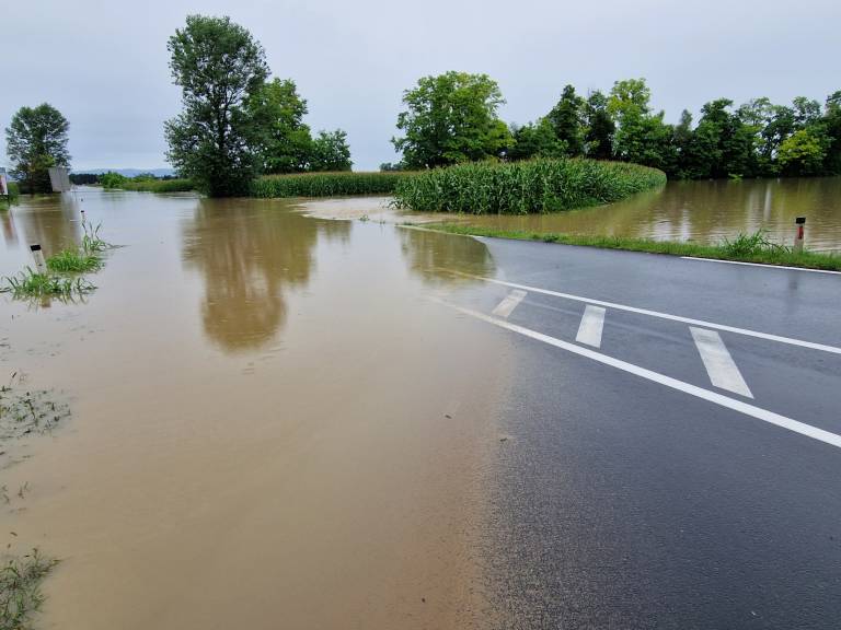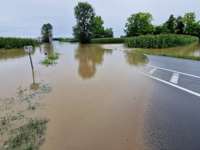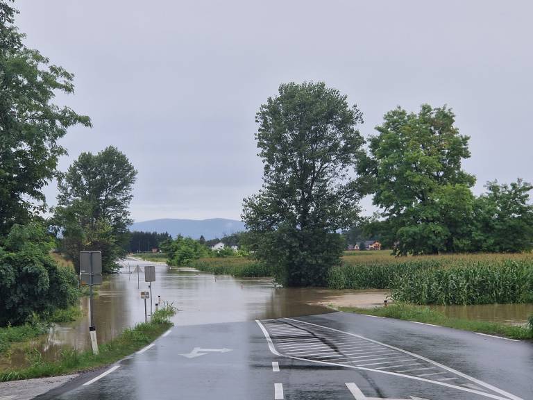 Narava ne prizanaša. Zaradi nadaljevanja obilnega deževja je Drava poplavila cesto pri Stojncih proti Borlu.