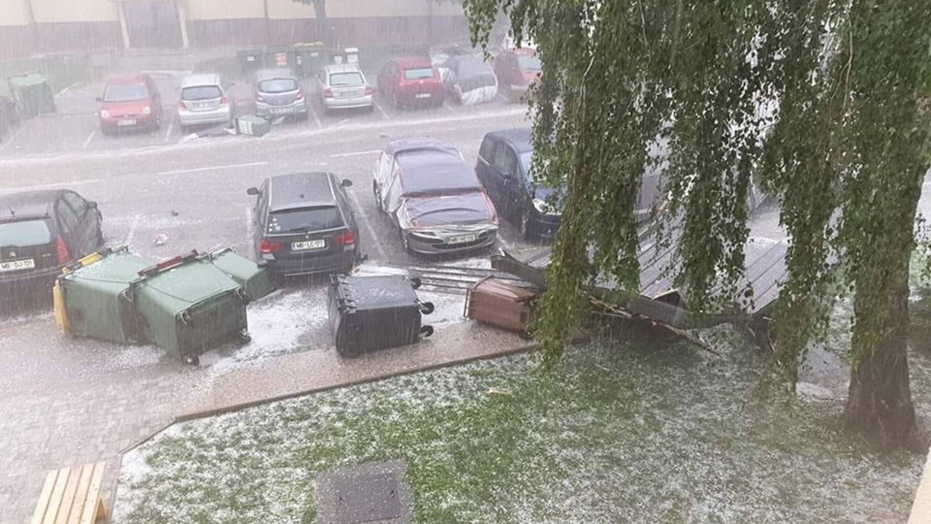 Toča je pobelila mesto, veter je prevračal drevesa in odkrival strehe, poplavilo je tudi središče mesta in številne objekte.