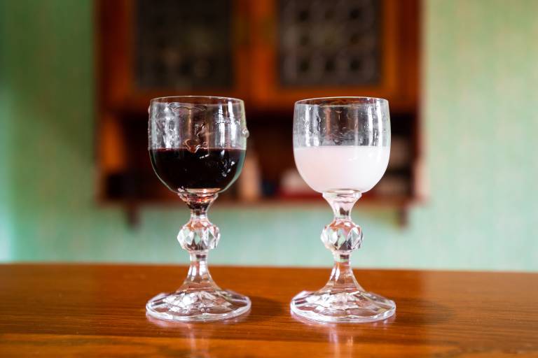 Ob hrani se spodobi nekaj dobrega tudi popiti. Haloško vino, ki pride od lokalnega vinarja, janeževo žganje, ki ob mešanju z vodo barvo spremeni v belo, in višnjevo vino so posebnosti v ponudbi pijač.
